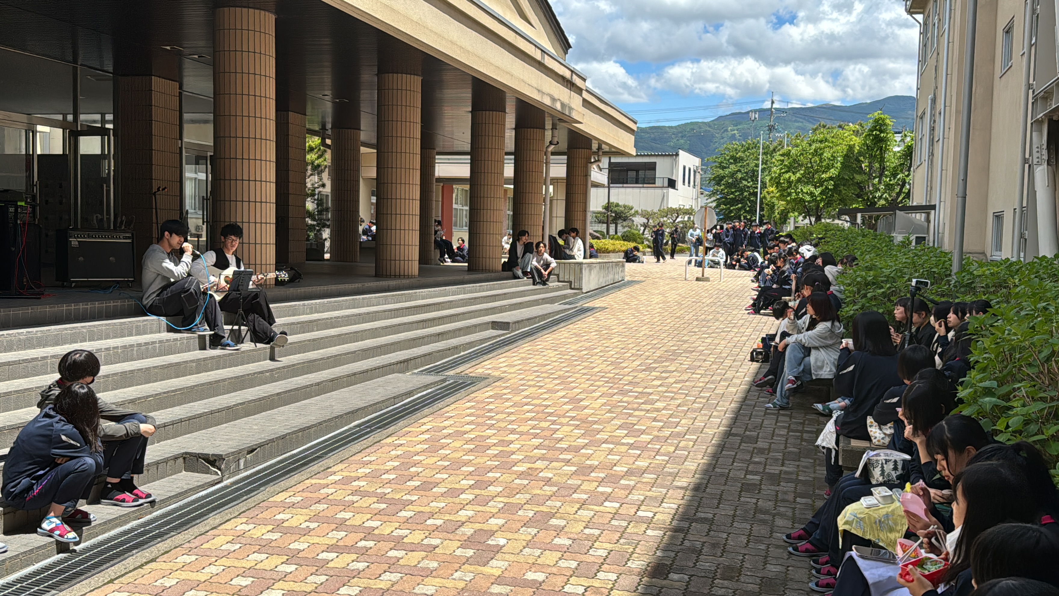 お昼には昨日に引き続き、ミニコンサート3日目がありました。吹奏楽部の2グループによる演奏で、天気にも恵まれ、多くの生徒が生演奏を見ながらお昼の時間を過ごしました。吹奏楽部の2グループの皆さんありがとうございました!!