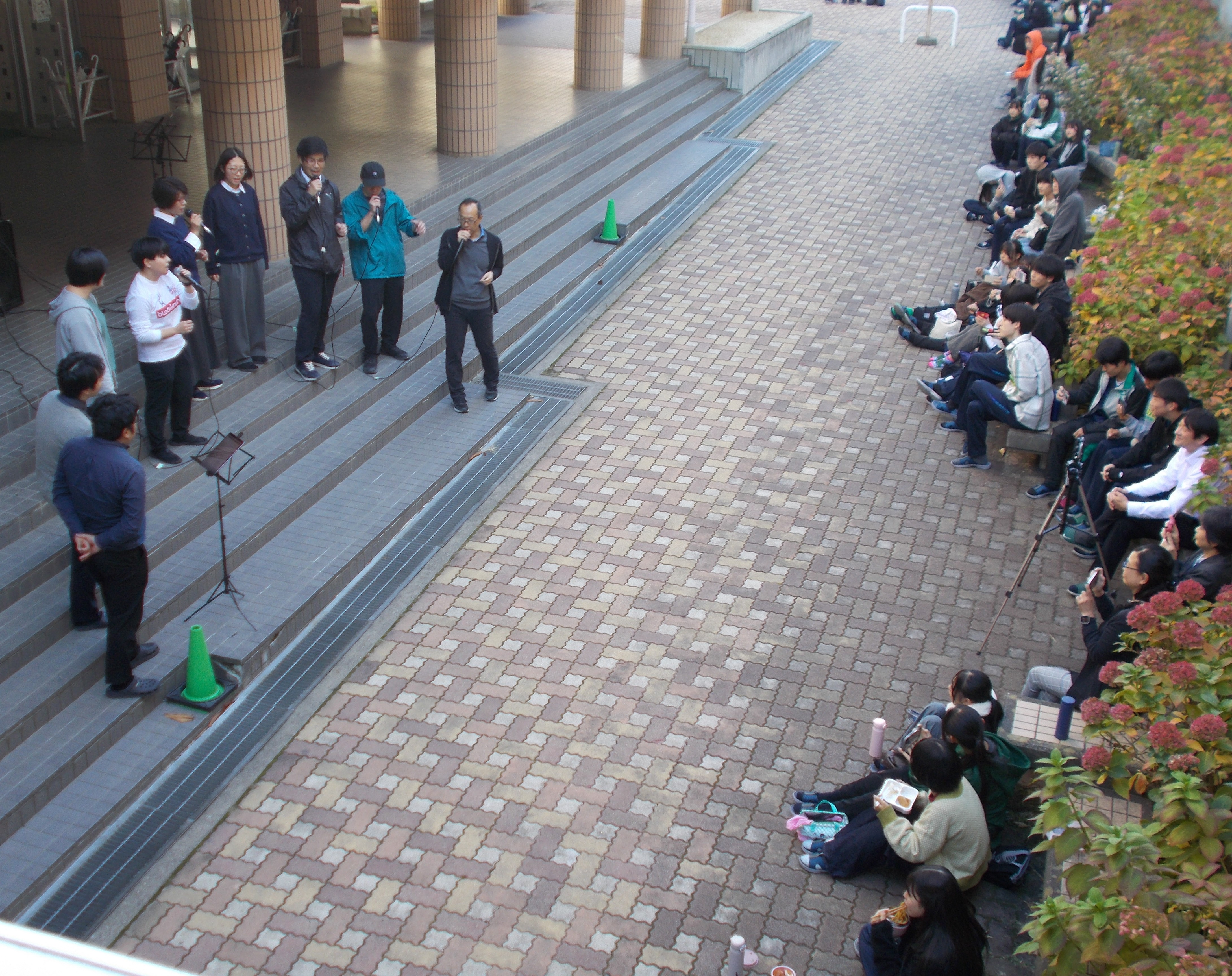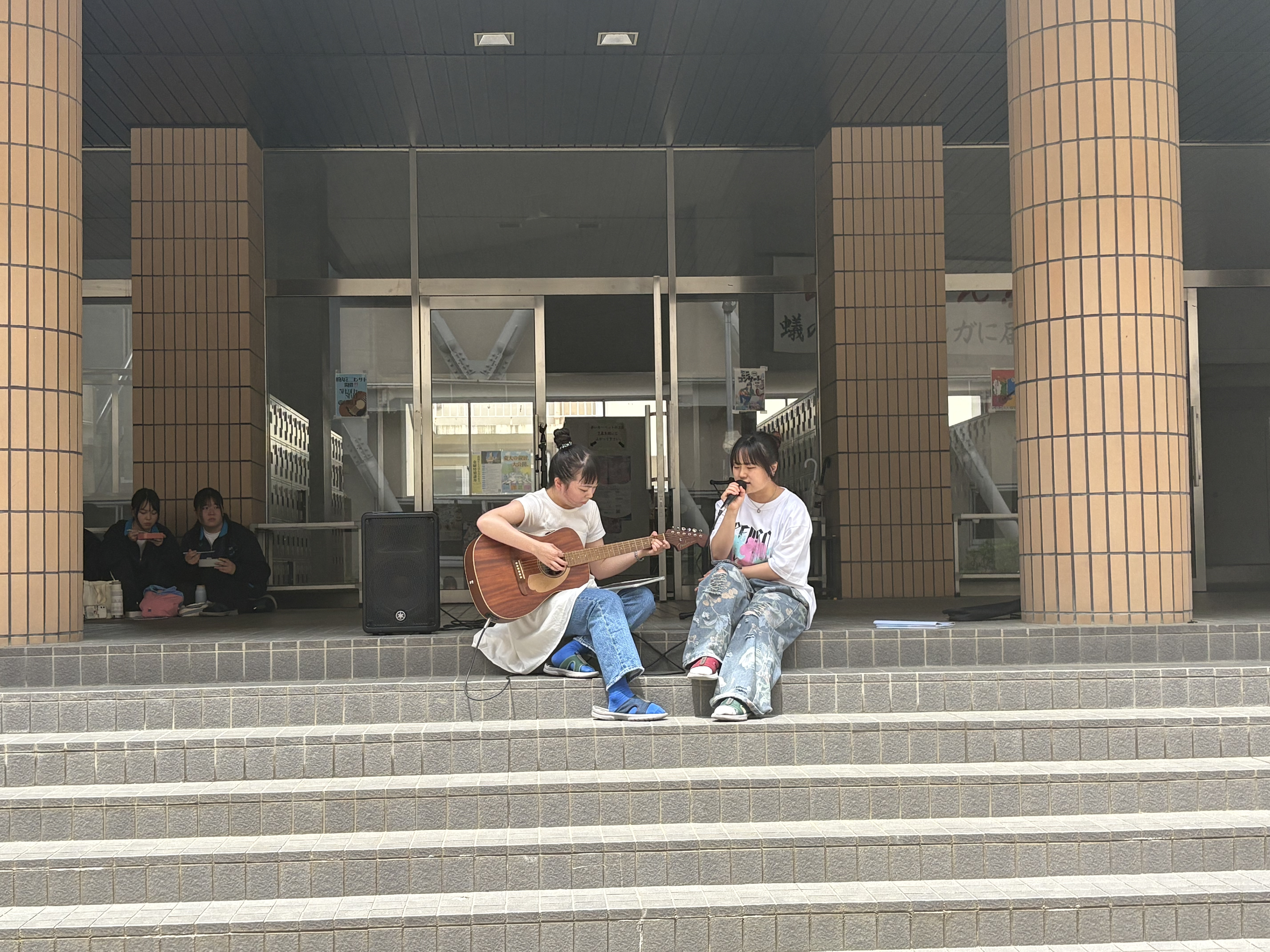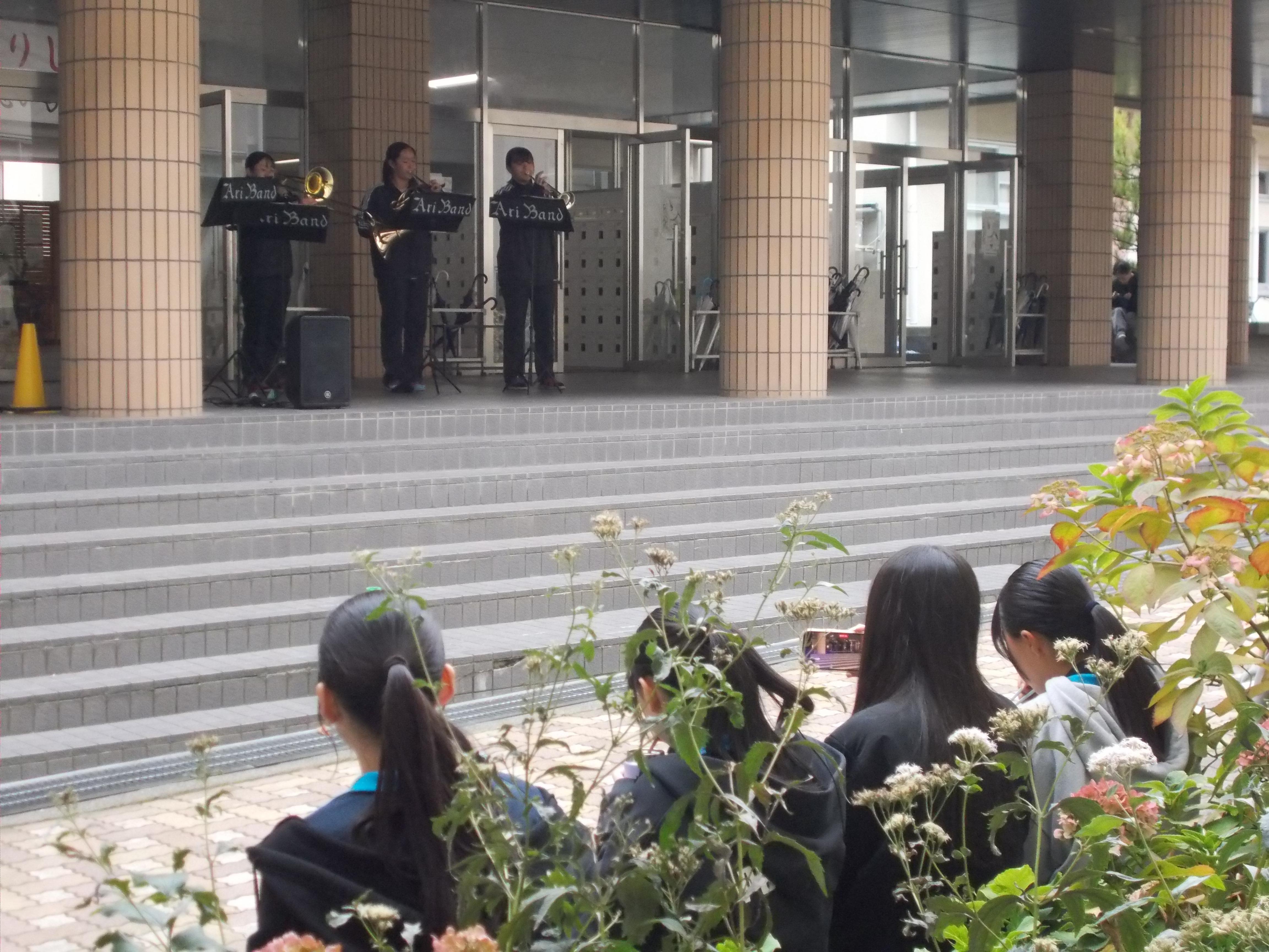 芸術の秋の訪れとともに、春に好評だったミニコンサートWeekが始まりました!初日は軽音楽部の皆さんの演奏でした。少し肌寒い天気ではありましたが、多くの生徒がお昼を食べながら美しい演奏に浸っていました。企画は23日(木)まで続きます。みなさんお楽しみに!