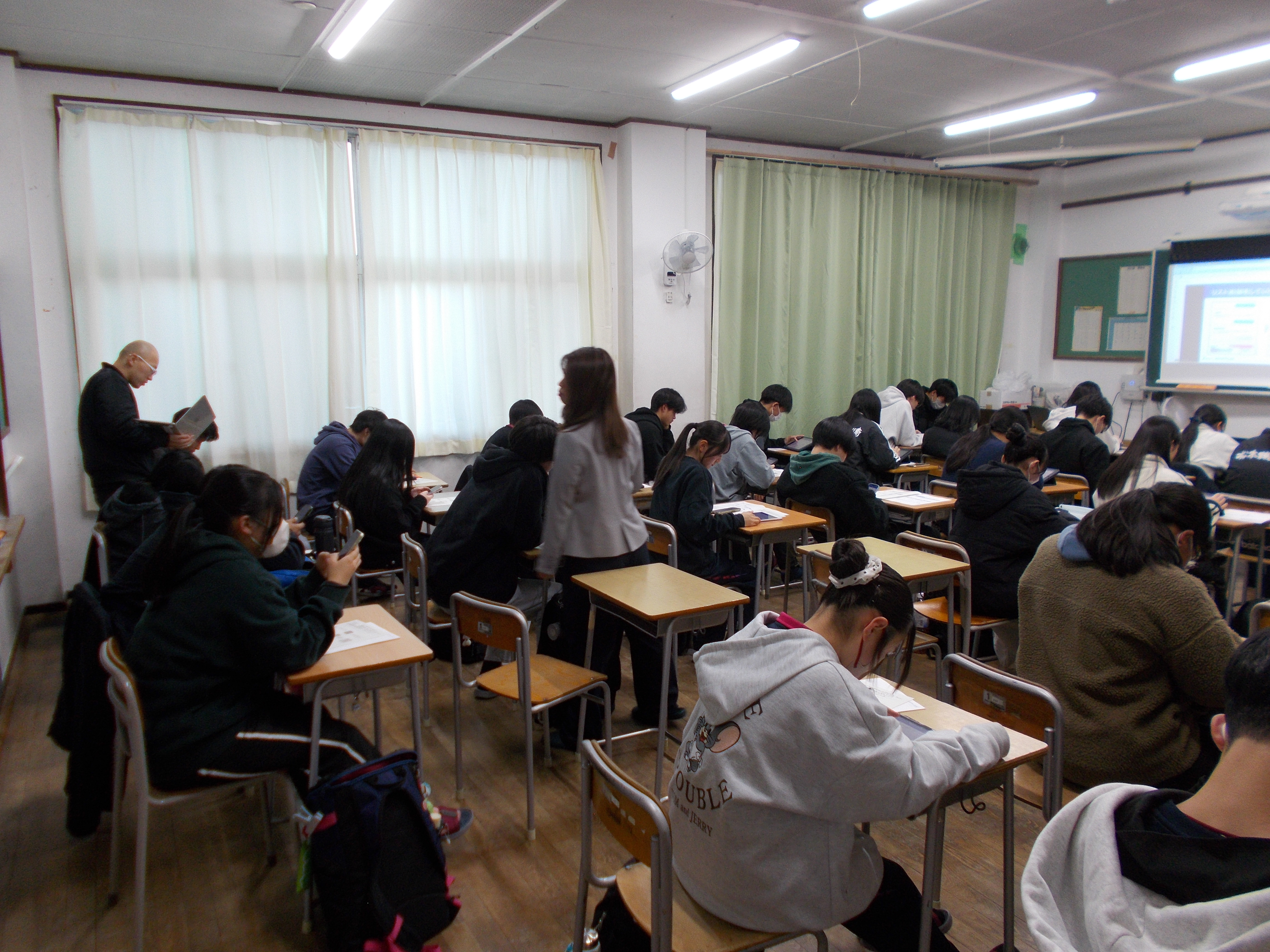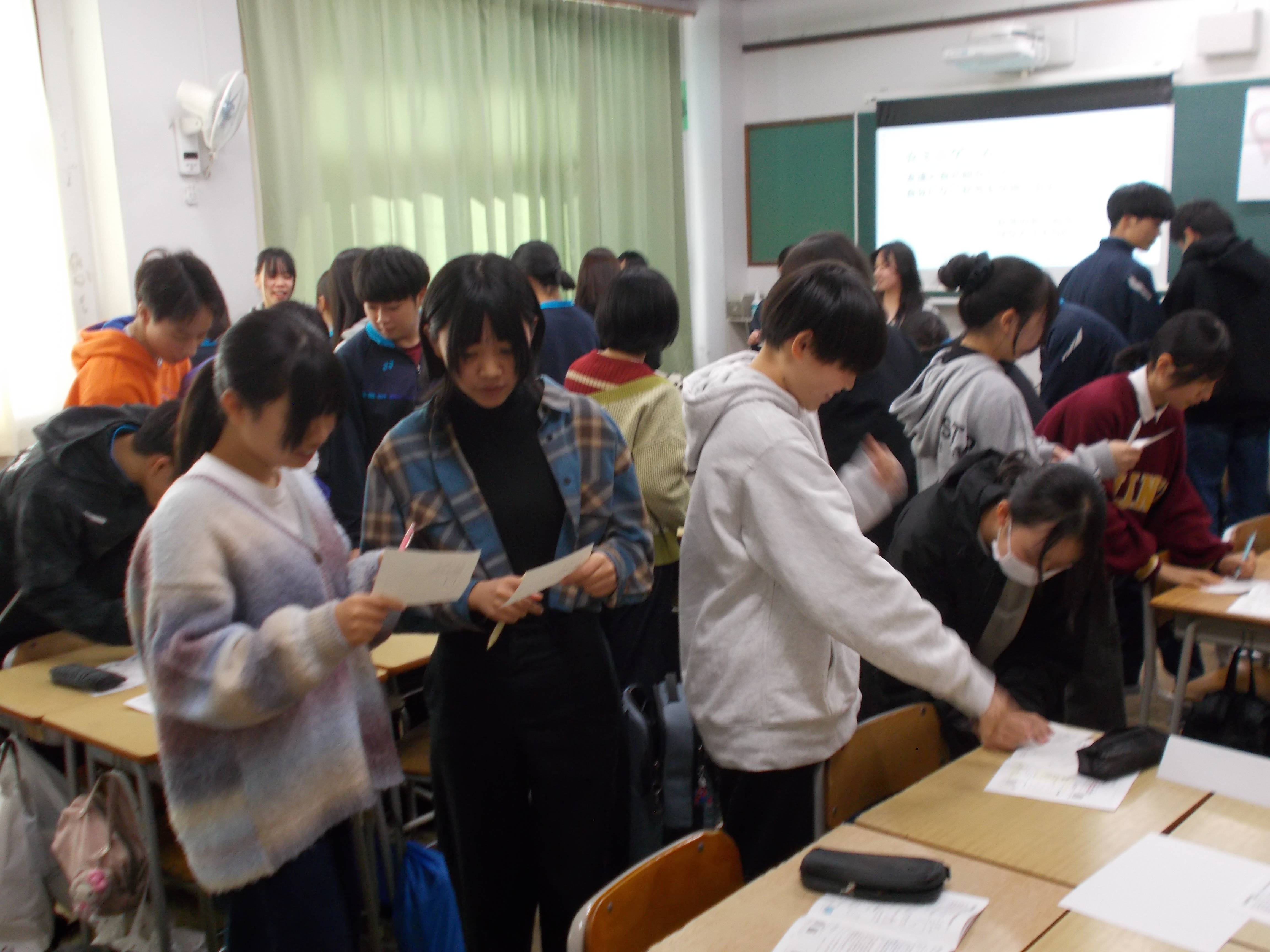1,2年生は探究の時間に教育実習生と語る会を行いました。実習生の高校時代の話や後輩へのアドバイスなど様々な話を真剣に聞いていました。