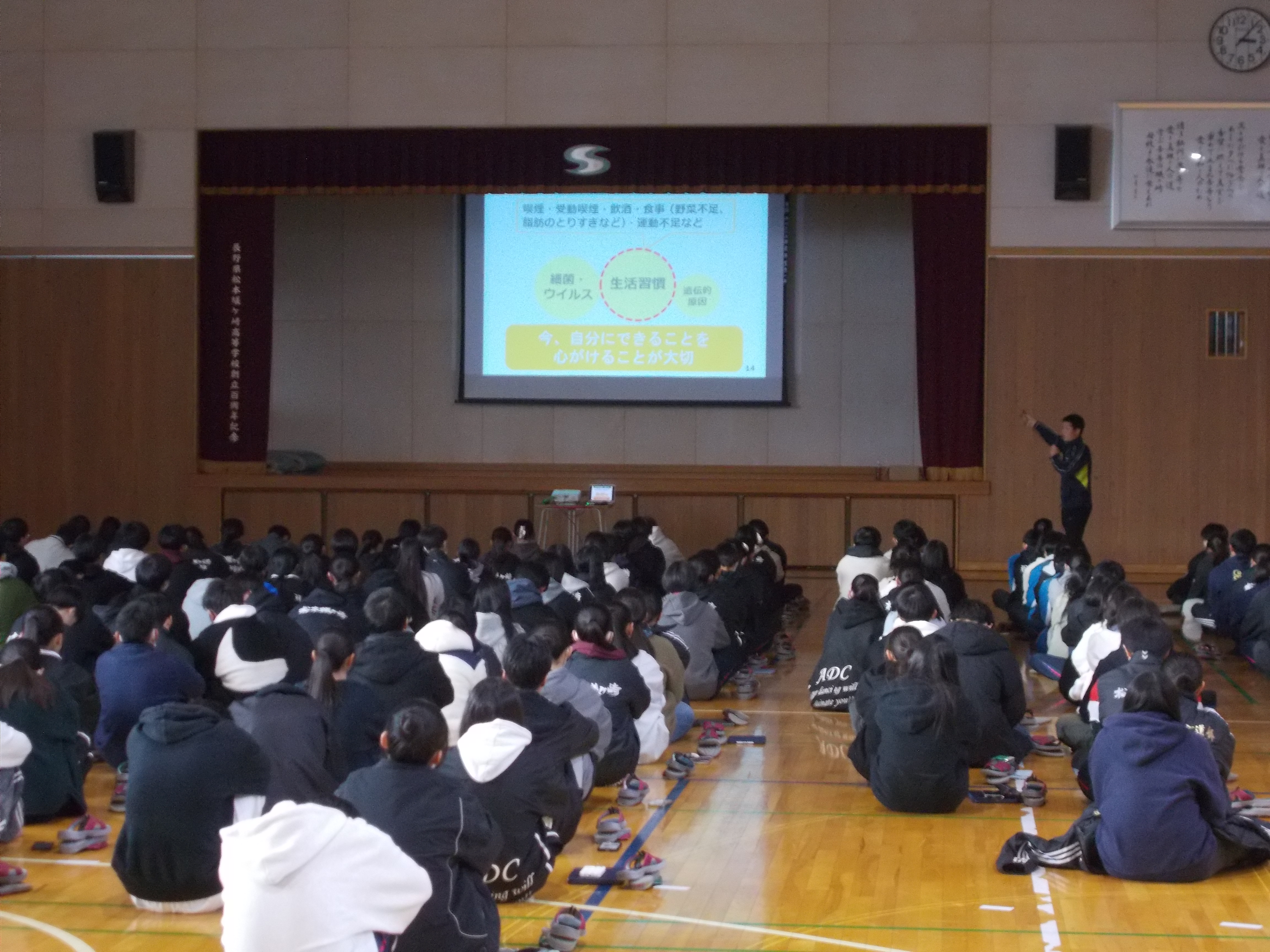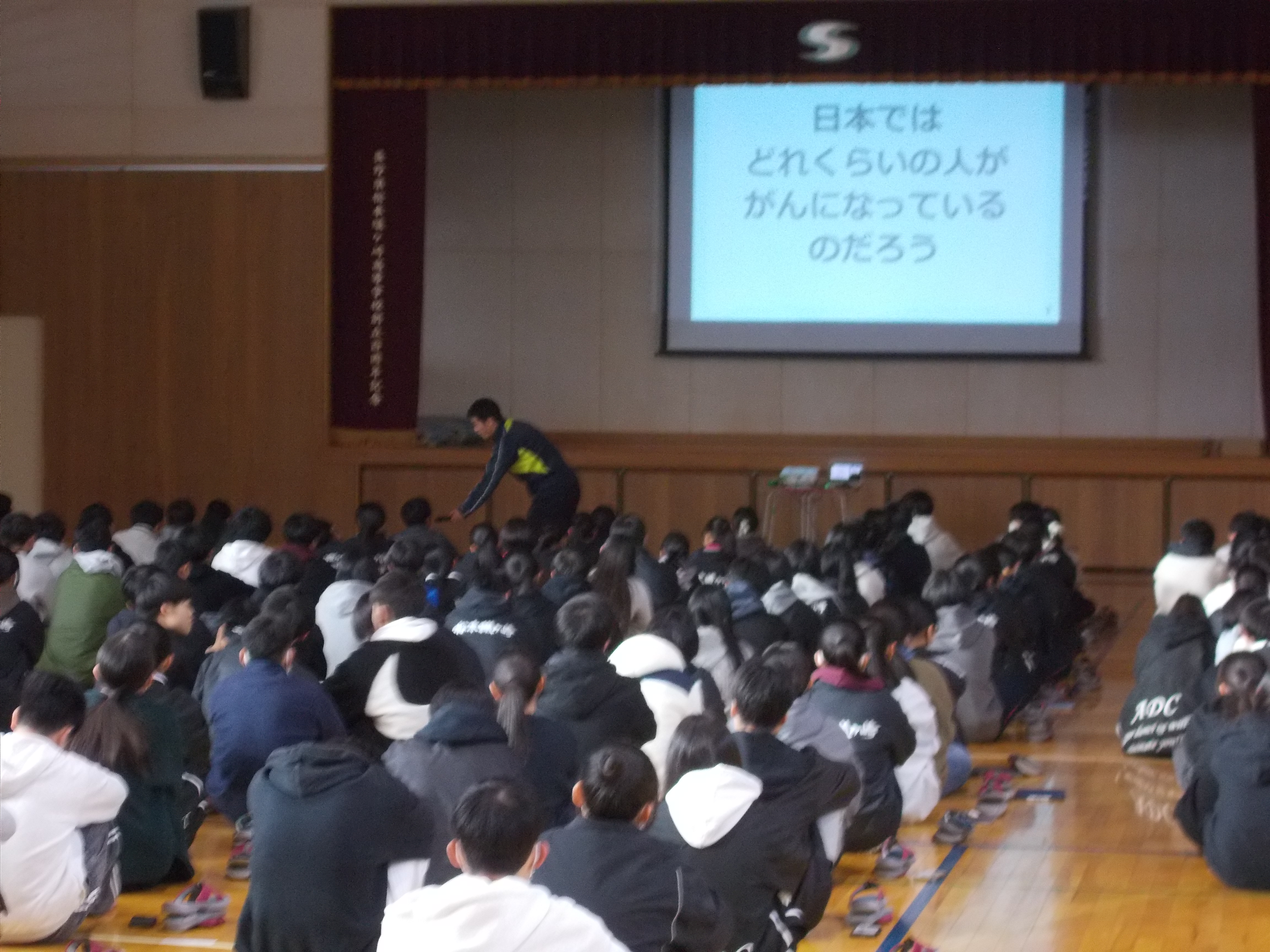 2年生はLHRの時間にがん教育講話を行いました。保健の授業で習った内容と絡めて、がんにかかわる幅広い知識を学びました。