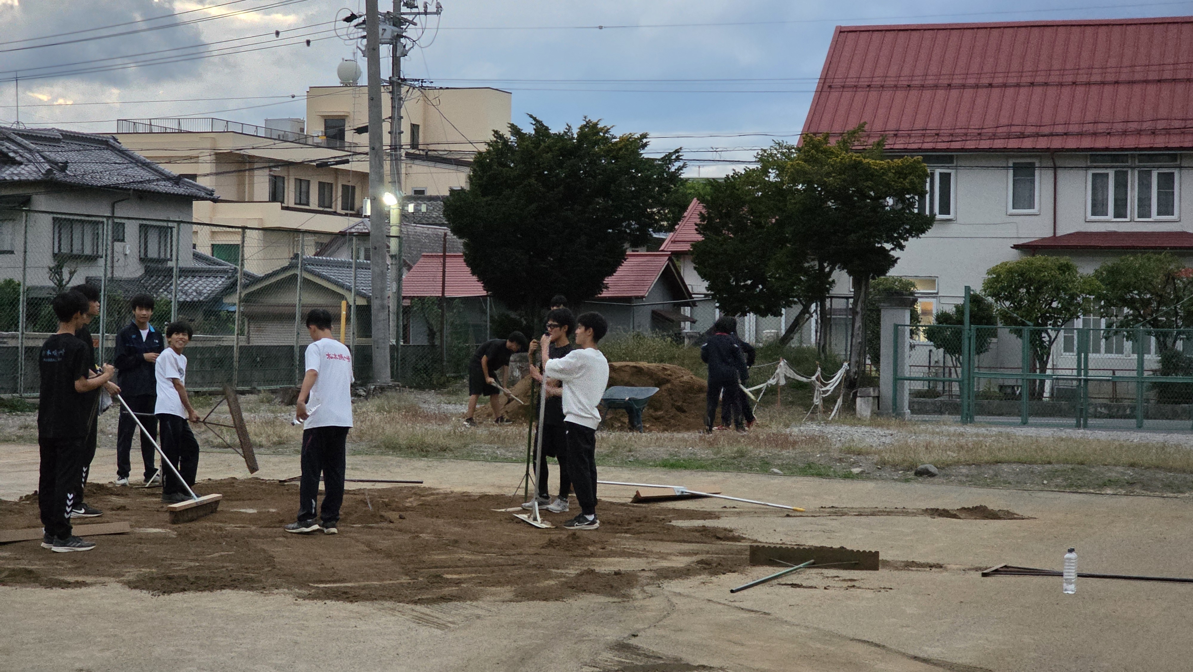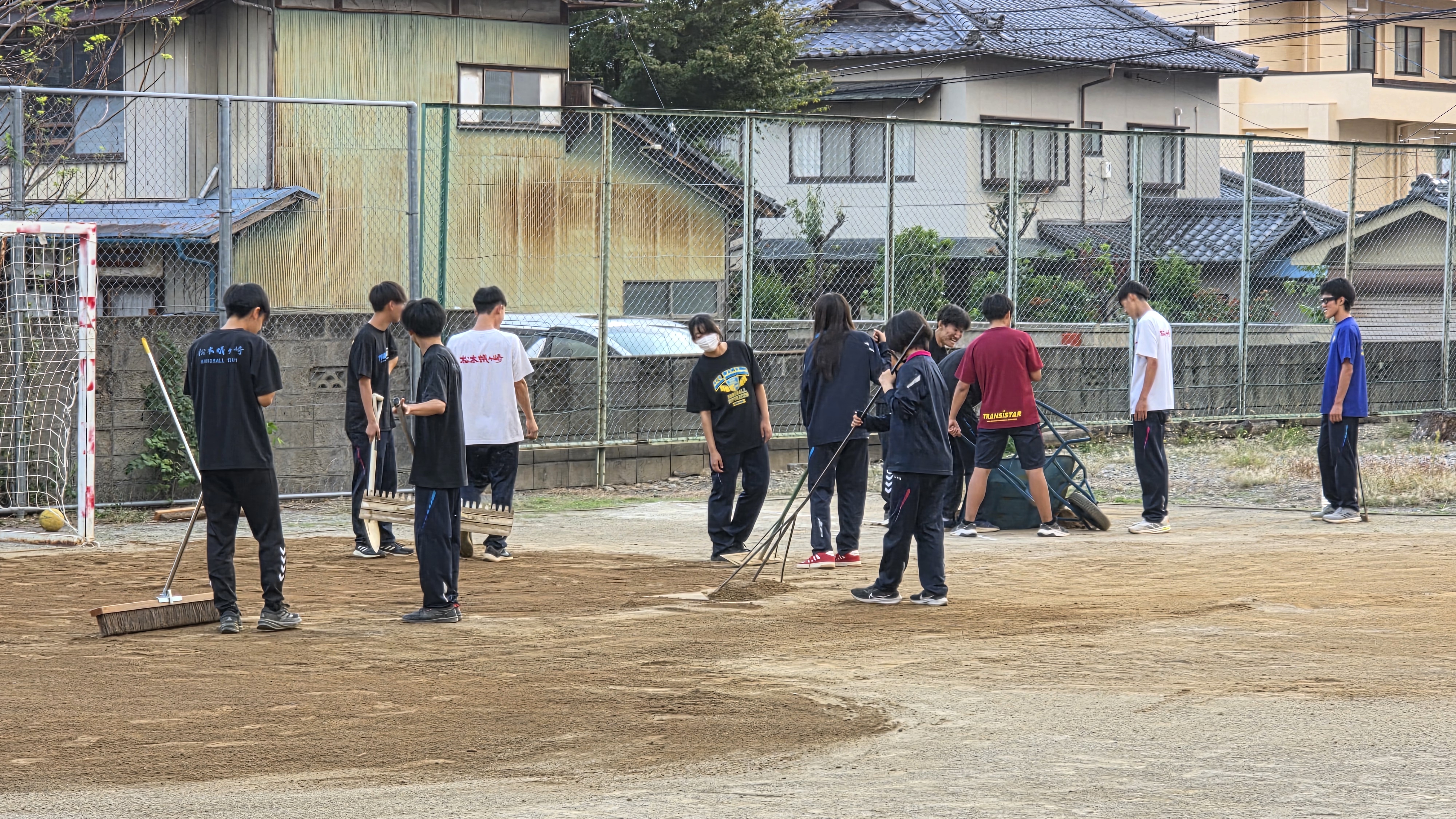 11月初旬にかけて、本校より北側にある第2グラウンドの整地作業を行いました。部活動など使用シーンが多いため、草取り・土入れ・塩カル散布・ローラー掛けを実施。表面の凹凸や水はけの悪さが目立っていましたが、実施後はかなり改善することができました。引き続き丁寧に整美を続けながら、みんなが思いっきり運動できる環境を維持していきたいと思います!