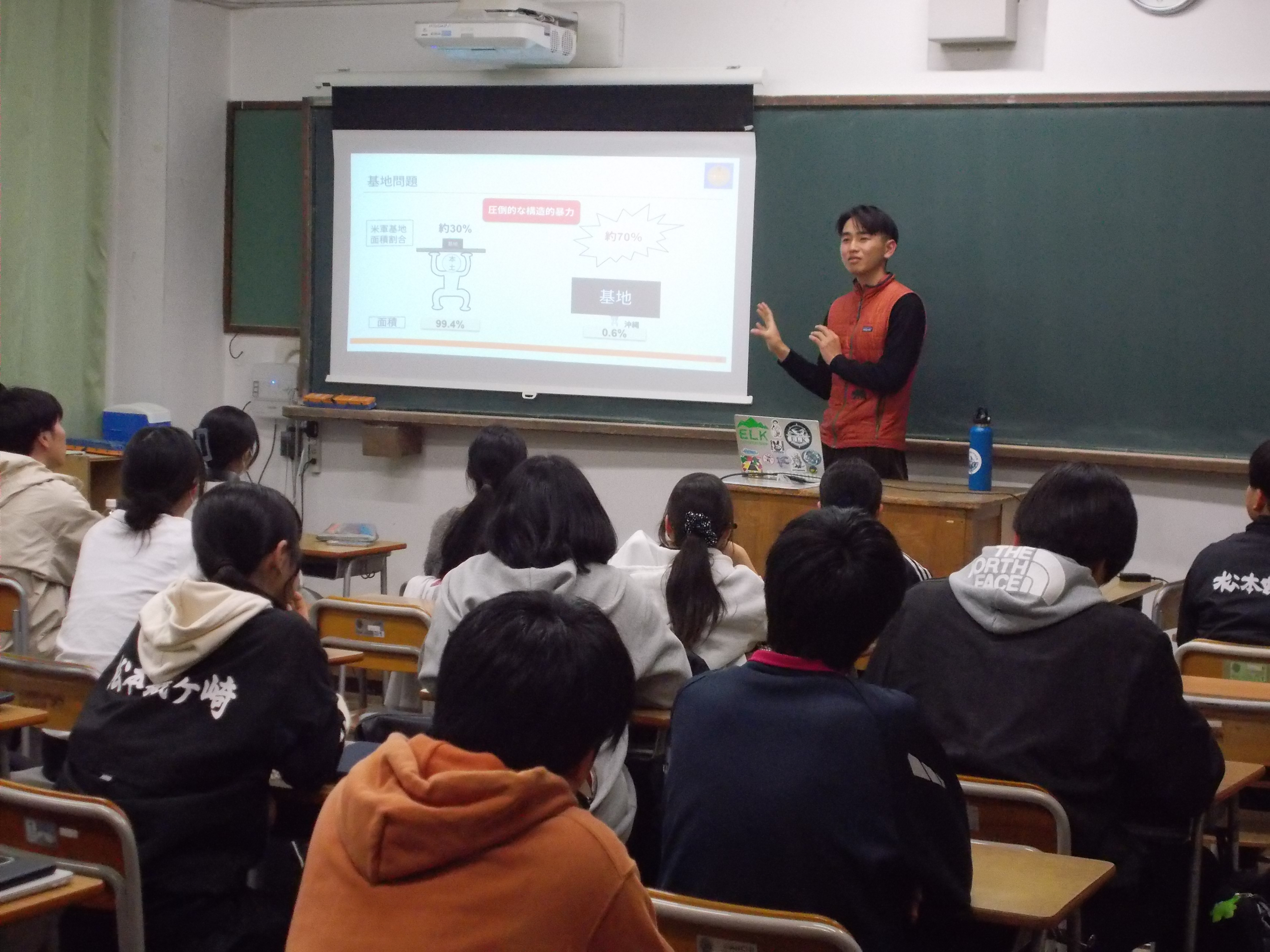 2年生はLHR・探求の時間に平和学習と進路講演を行いました。平和学習では信州大学の学生を講師に招き、沖縄研修旅行に向けて平和学習を行いました。進路講演ではスタディサプリ