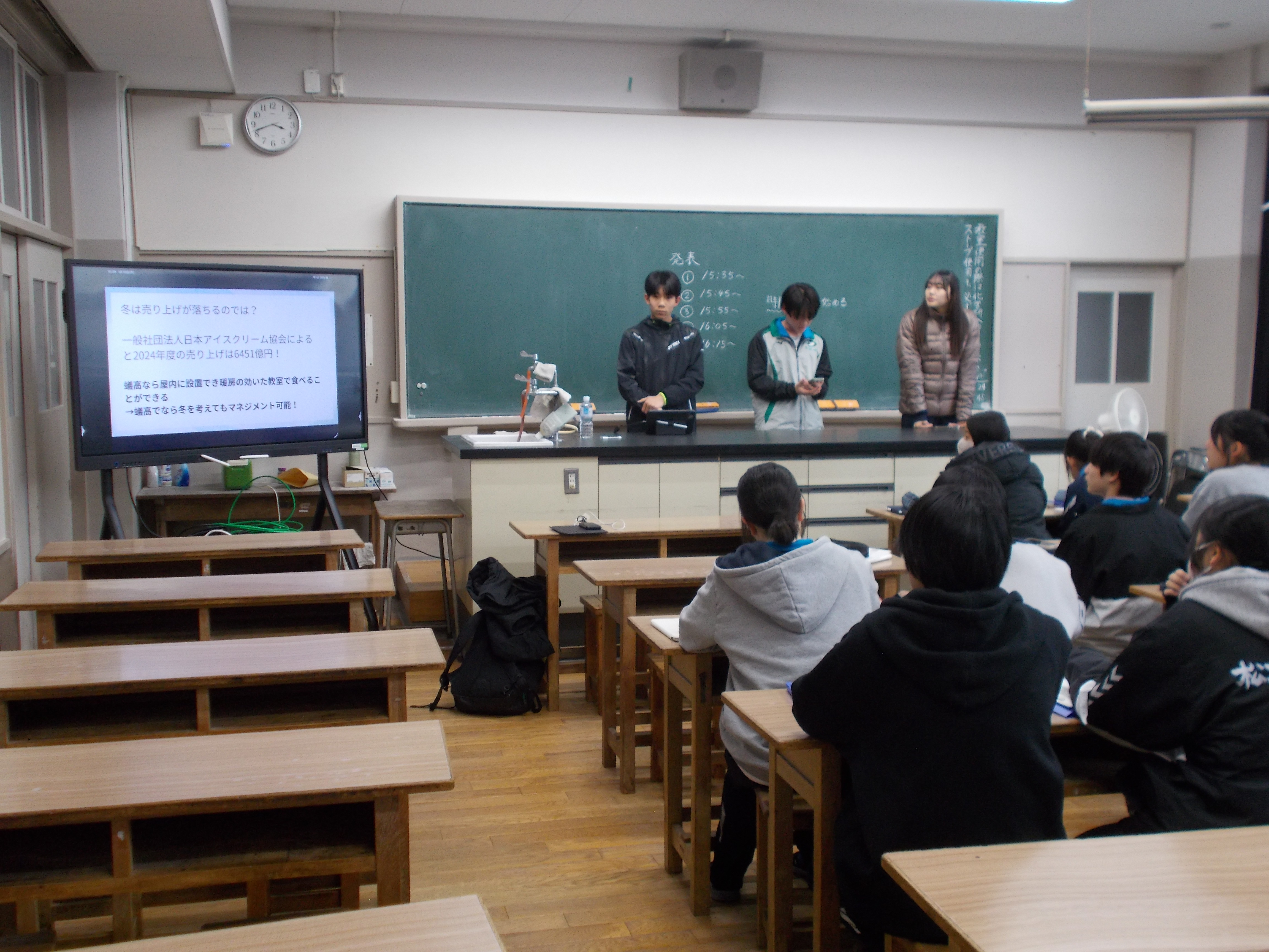本日は午前中に全校探究を行い、3年生がこれまで取り組んできた個人探究の成果を発表しました。1,2年生は3年生の発表を真剣に聞いていました。1,2年生の皆さんは今日の発表で聞いたことを参考に今後の探究学習を頑張っていきましょう。