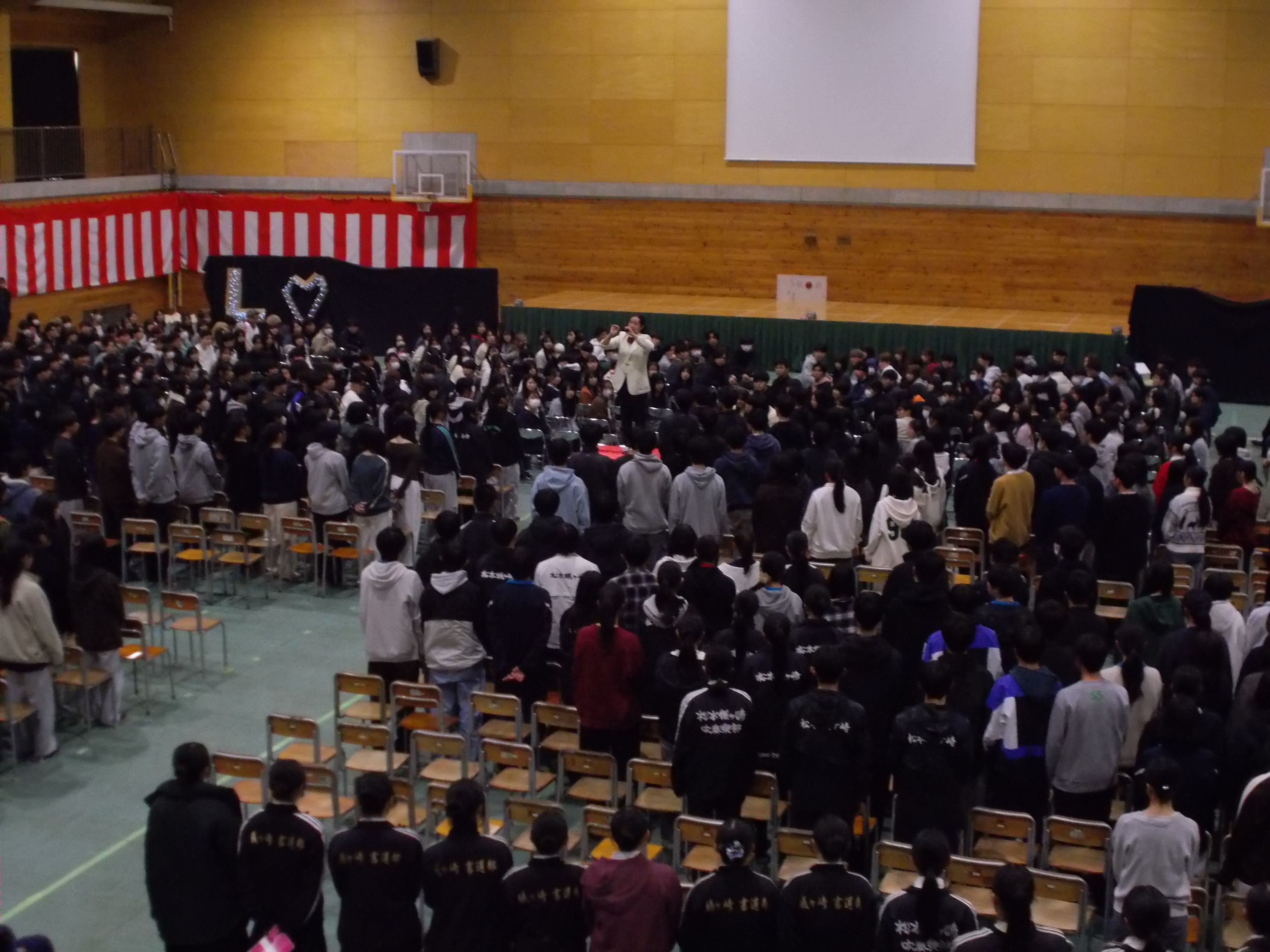 本日は新生徒会が中心となって3年生の卒業を祝う予餞会を行い、部活動によるパフォーマンス披露や1,2年生全体で「友~旅立ちの時~」の合唱を行いました。