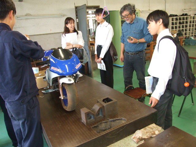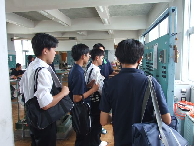 機械工学科と電気電子工学科で見学している中学生がいましたので、写真を撮らしてもらいました。