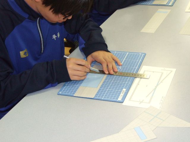 建築物のミニチュアをクラフト紙で制作する実習、製図機とCADを使った製図の実習を行いました。模型の制作には日本を代表する建築家安藤忠雄氏の「光の教会」(大阪府茨木市)を用いました。右は完成したペーパークラフトで、みごとに光の十字架が投影されています。