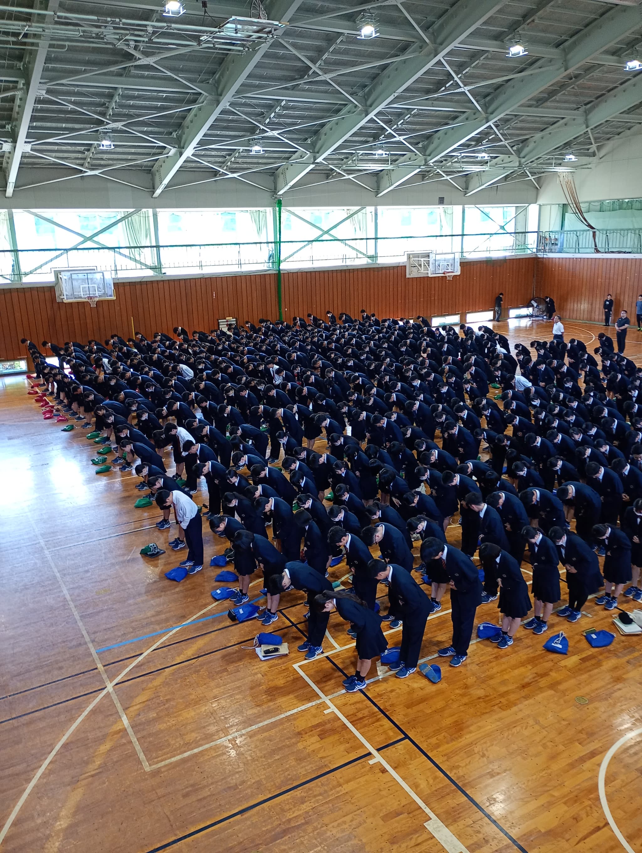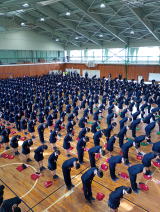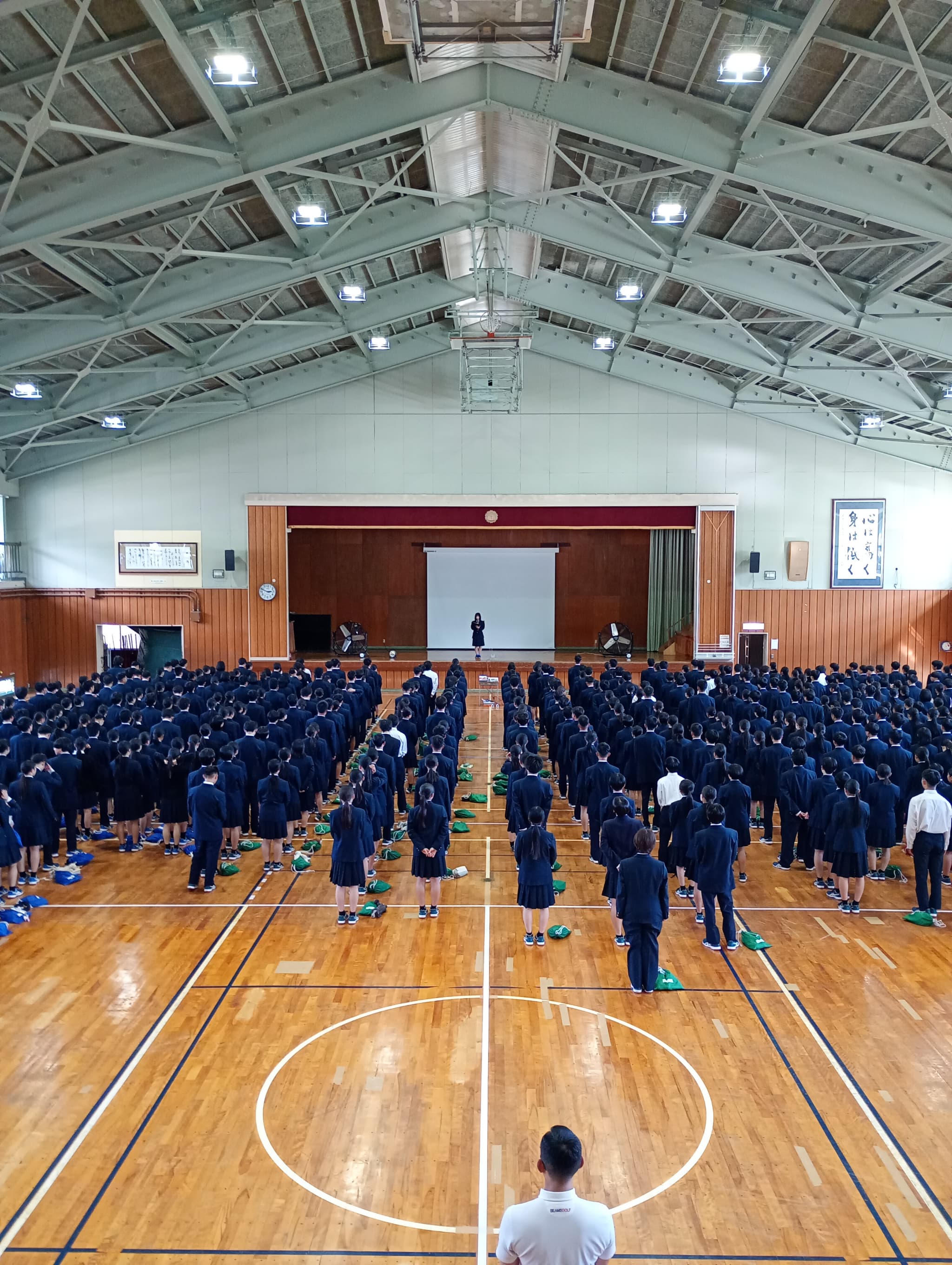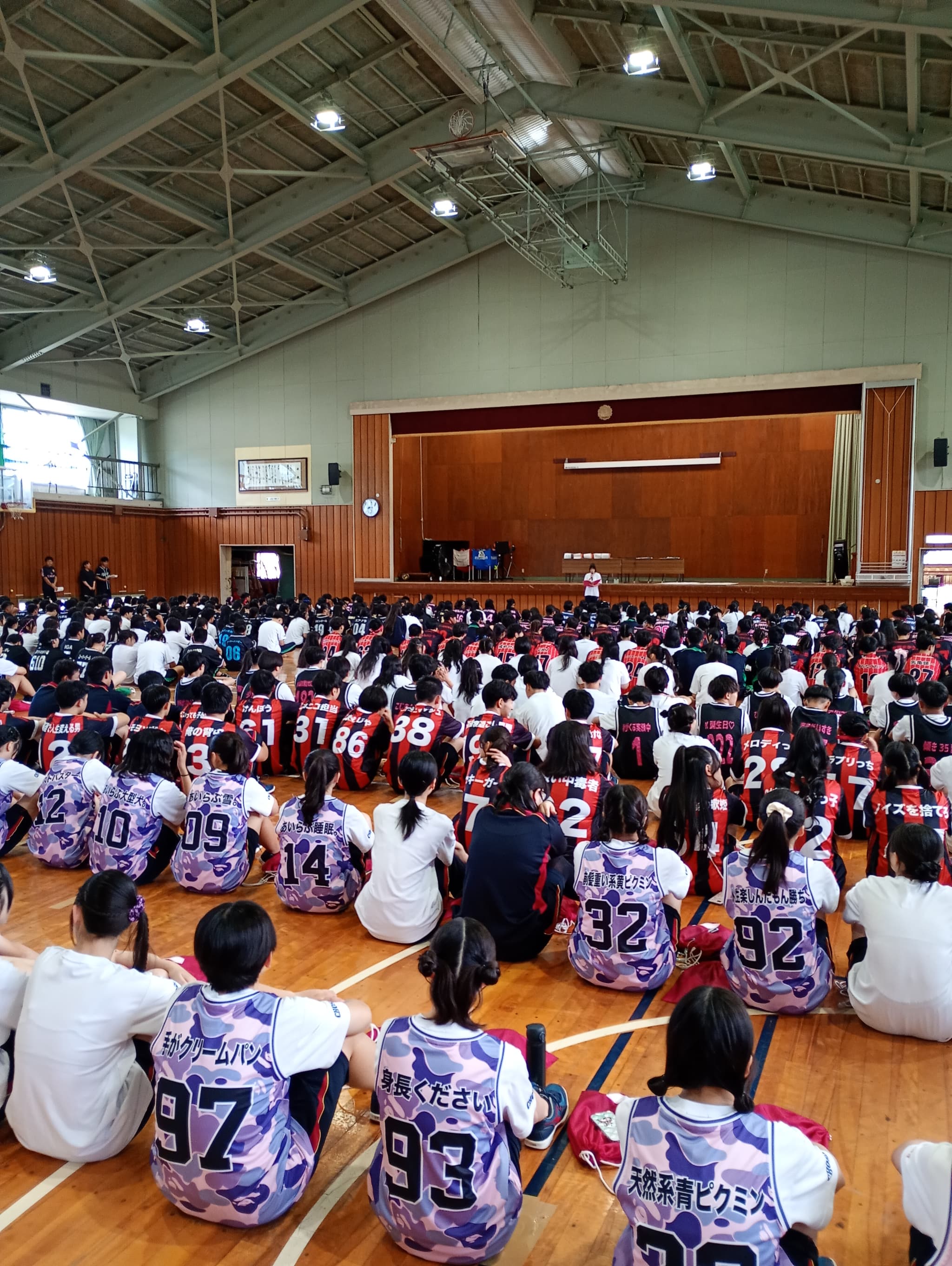 全校生徒が参集してのデパート合同会議、生徒総会、北信大会壮行会を行いました。