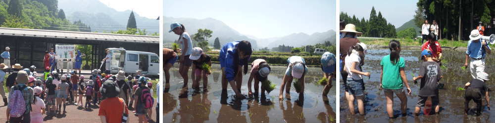 さて、田植えが始まりました。みんな裸足です。なかなか一歩が田んぼに入りませんでしたが、いざ入ると「ワー!ワー!」、「キャー!キャー!」言いながらなかなか作業になりません。泥に足を取られるので仕方がありませんがね。