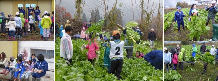 農家先生が「カブは、今日の夕ご飯で食べられるよ!」、「野沢菜は、次の日に食べられるよ!」と言っていました。