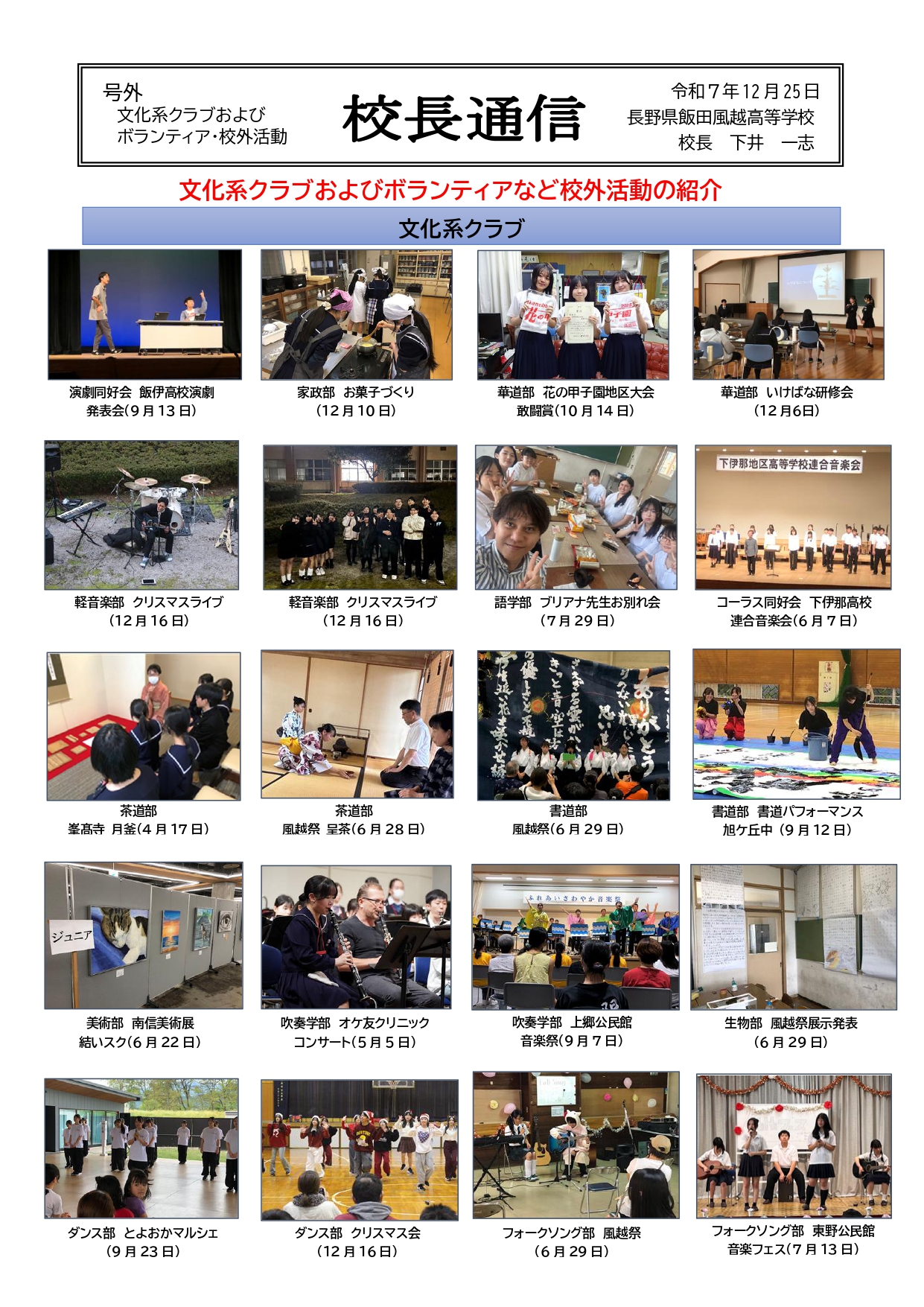 校長通信 12月25日(木) 12月25日(木) 9月25日㈭ 7月30日(金) 7月7日(金) 4月25日(金) 4月17日(木) 3月24日(月) 3月4日(月) 12月26日(月) 9月25日(水) 7月25日(金) 4月27日(金) 3月22日(金) 3月1日(金) 12月27日(水) 9月28日(木)