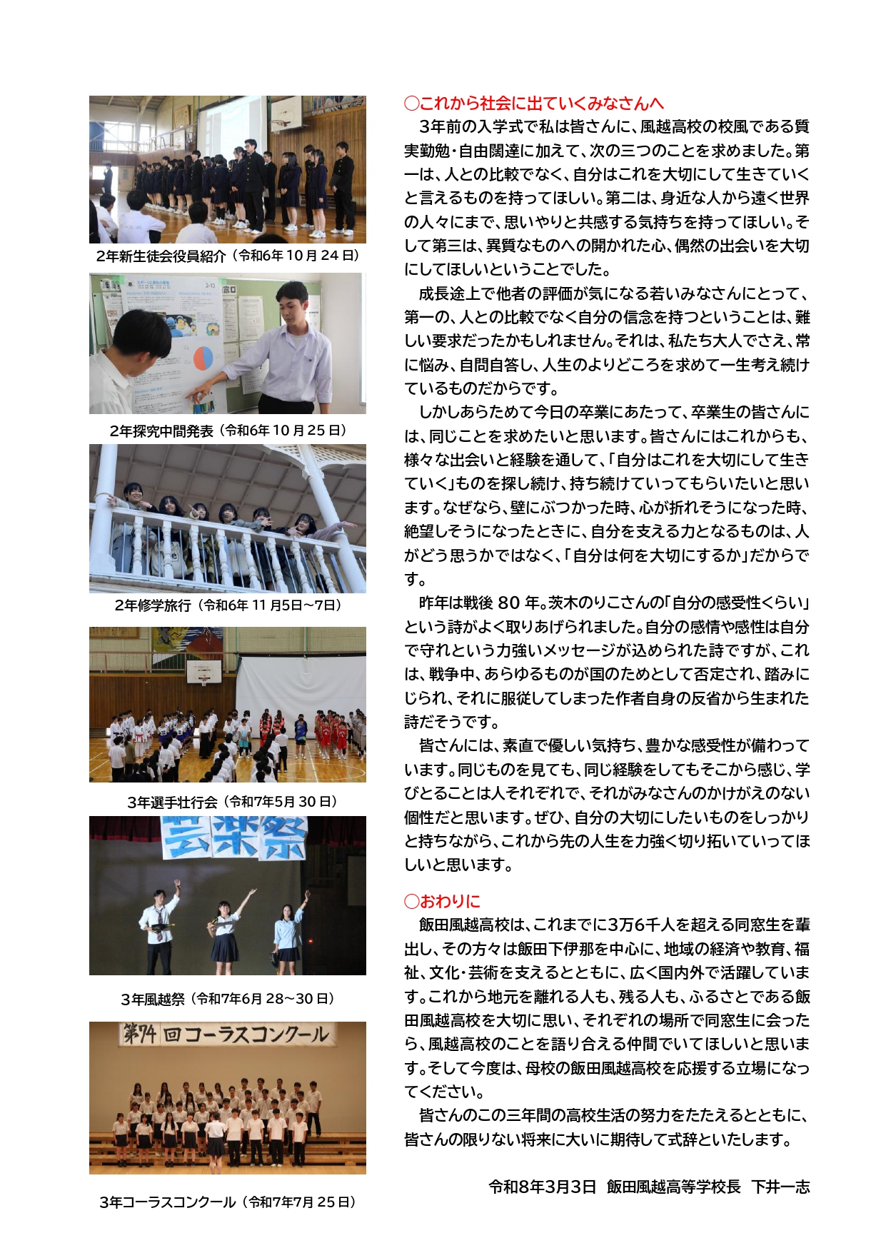 日頃から本校の教育活動にご理解、ご協力いただきありがとうございます。