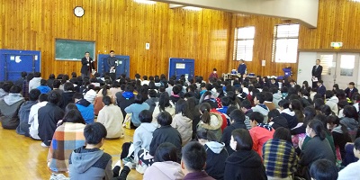 | 12月14日 2学年 学部説明会 信州大学より9名の講師の方をお招きし、各学科等について説明いただいたり、模擬講義を行っていただきました。 自分の興味のある学科等について、5,6限を使い90分間の説明・模擬講義を受けたことで、大学の講義を受けているような体験となりました。 これから進路選択をしていく2年生、この説明会をきっかけに自らの進路をより具体的に考えていけるといいですね。 |