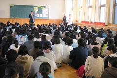 | 12月14日 1学年講演会 (総合的な探究の時間) 諏訪市役所企画部企画政策課より、2名の職員の方をお招きし、 「諏訪市の統計について」というタイトルで講演いただきました。 人口の変化、工業を中心とする産業など、様々なデータをご紹介 いただき、データからわかる諏訪市の課題や、それに対する取り組みについてもお話しいただきました。 最後には、諏訪市・諏訪地域に関する統計データの探し方も教えて いただきました。 |