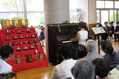 | 職員玄関では、ロビーコンサートが行われ、大正のオルガン伴奏に合わせた、音楽部の校歌演奏、また有志による明治のピアノを使った演奏発表がありました。 |