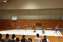 | 29日は一般公開2日目、多くの発表、展示が行われました。大体育館では新体操部の発表がありました。個人、団体ともに、美しい演技が披露されました。 | |