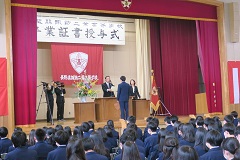 | 3月1日 卒業証書授与式 晴天にも恵まれ卒業証書授与式が挙行されました。 77回生230名1人ひとりが呼名され、クラスの代表者に卒業証書が手渡されました。 3年間の思い出を胸に、自分で選んだ新たな道を力強く進んでいってくれることを願っています。 |