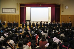 4月10日(木)音楽部 一万人の第九 大阪万博 EXPO2025 参加に向けて 同窓会、後援会、学校長より激励をいただきました。 |