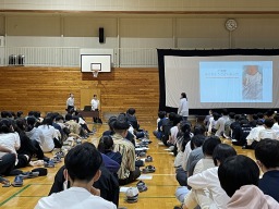 | 7月11日 1学年保健講話 諏訪日赤病院より助産師さんにお越しいただき、「多様な性」と「デートDV」についてお話いただきました。 LGBTQ+やパートナーとの関わり方について資料や最近のニュースなどを用いて教えていただきました。 自分や周囲の人を大切に尊重しあう人間関係の築き方について考える機会となりました。 |
