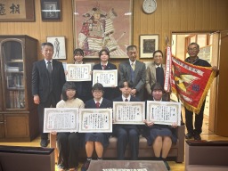 | 5月30日に行われた第31回長野県高校かるた大会において、優勝したかるた部に、校長先生から激励のお言葉をいただきました。生徒が力を合わせて、粘り抜いた成果です。 | |