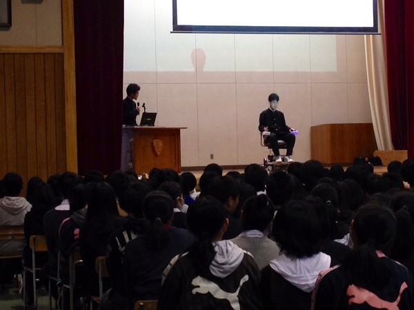 | 3月21日 信州つばさプロジェクト参加報告会 長野県が企画する「信州つばさプロジェクト」でマレーシアで1週間の研修を行ってきた2年生より報告会が行われました。 マレー語を使った挨拶から始まり、研修での実体験や感じたことを、たくさんの写真を使ってとても分かりやすく報告してくれました。 話を聴いた1年生、2年生の中には、今日の報告会を機に海外研修に興味を持った人もいると思います。 コロナの規制も緩和し、県や自治体、学校主催で様々な企画があるので、積極的に調べたり、相談したりして情報集めからはじめてみましょう! |