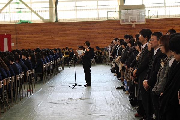 | <3月1日 卒業証書授与式> 4年ぶりに体育館に全校生徒が集まり、卒業証書授与式が挙行されました。 76回生236名1人ひとりが呼名され、クラスの代表者に卒業証書が手渡されました。 学校長からは、やなせたかしさんの生き方から自分の中の正義について考えてほしいということと、これから生きていく中での様々な困難から逃げずに立ち向かって行ってほしいという言葉が贈られました。 |