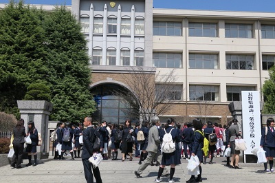 4月5日(土)入学式 新入生200名が入学しました。 晴天のもとで決意を新たに代表生徒が宣誓しました。 |