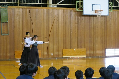 | 二葉祭に先立って、書道部、吹奏楽部による発表が行われ、作品が披露されました。 | |