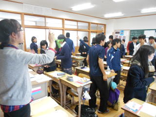 12月4日(金) ベトナム高校生来校 日本語コミュニケーションと日本文化について学ぶため、ベトナムから21名の生徒が来校し、1年4組5組が迎えました。4組は家庭科と英語の授業を、5組は書道と英語の授業を共同で行いました。互いに英語でコミュニケーションをとり、親睦を深めました。 |