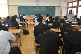 | 1月16日(月) センターチャレンジ センター試験まで残り1年となりました。今年のセンター試験の問題を実際に解き、受験に向けて意識を高めました。 |