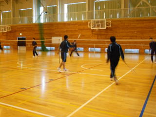 12月12日(金) 体育の授業風景 雪の影響でグラウンドが使えないため、室内の競技を行っています。12月からは1年生男子はバドミントン、女子は卓球の授業です。 |