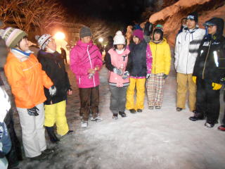 2月13日(金) 飯山雪まつり雪像完成 2月7日から7日間かけて製作してきた雪像が今晩完成しました。今回は飯山北高校として参加する最後の雪像製作です。 美術部で原案を作り、デザインを作った中澤理紗さんが現場監督、実行委員長の足立良太君と増尾小春さんの3人が中心となり(写真下)、7日間頑張って完成させました。 14日15日に会場(城北グラウンド横)で見ることができます。是非会場に足を運んでご覧になって下さい。 |
