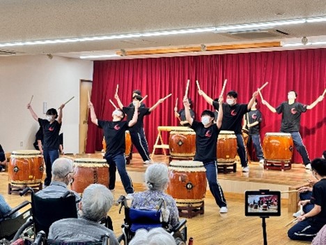 やすらぎの園様で太鼓の演奏会を行いました。学年ごとオリジナルの振り付けを考え、4月から練習を重ねてきました。その成果を発揮し、とても迫力のある演奏ができました。施設の方からは「素晴らしい演奏でした」と感想をいただきました。