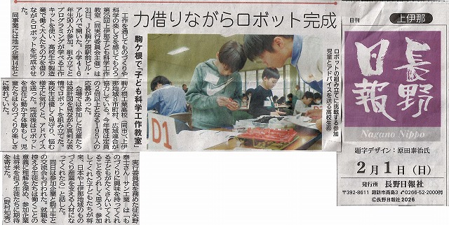 長野日報に子ども科学工作教室の記事が掲載されました