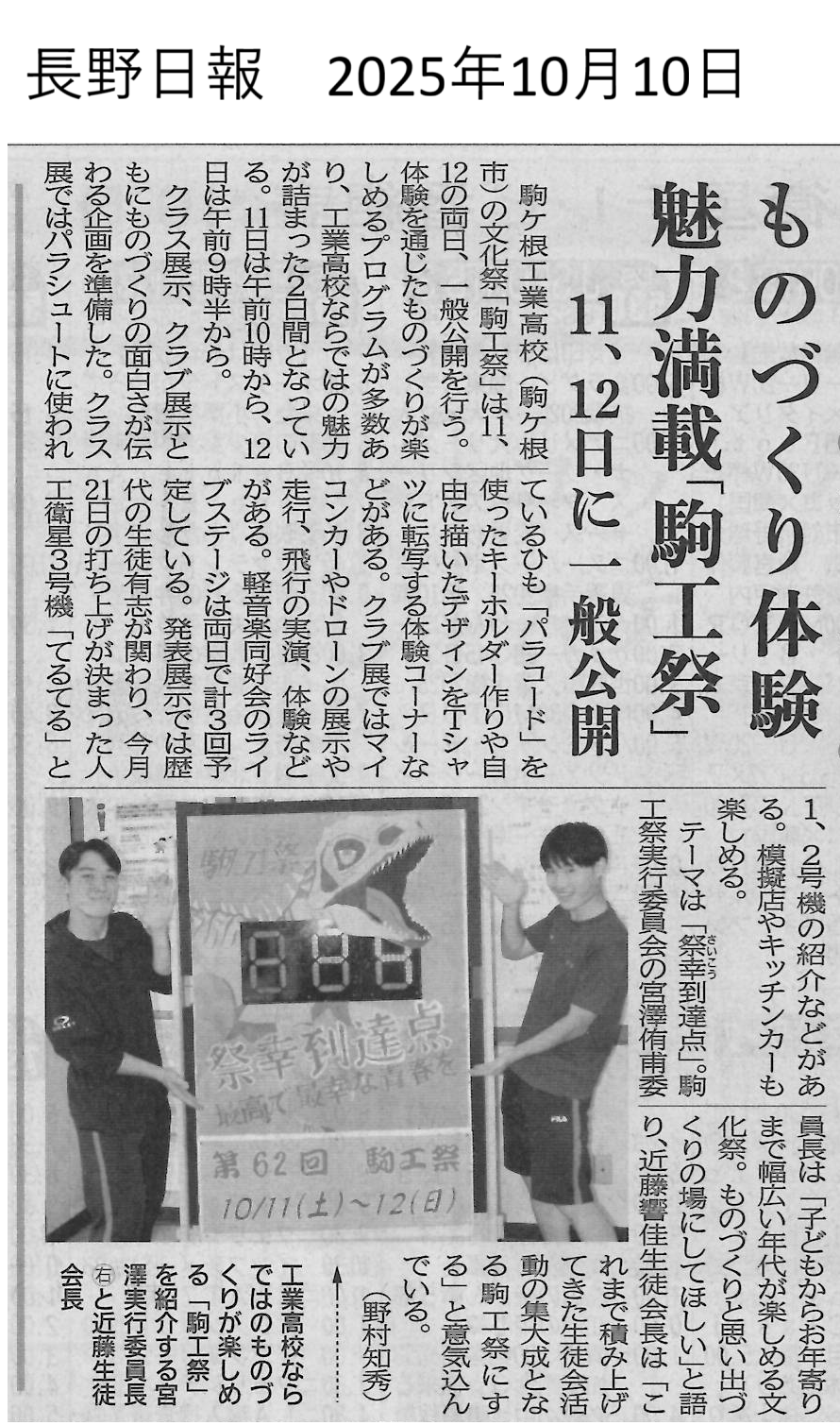 駒工祭2日目、3日目は一般公開が行われました。一般公開では2日間で千人を超える方にご来場いただきました。一般公開の様子を紹介します。