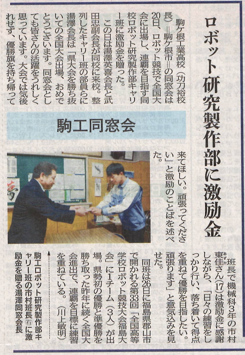 長野日報にロボット研究製作部キャリー班の激励会の様子が紹介されました