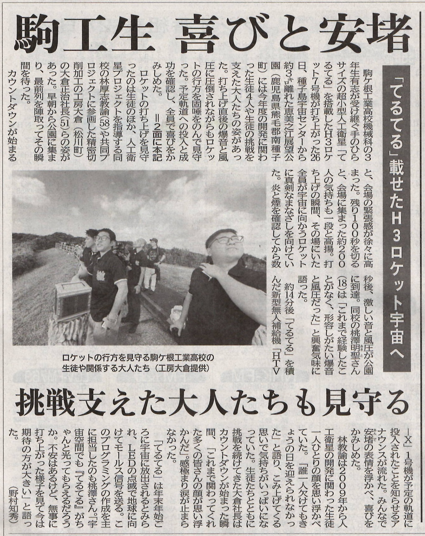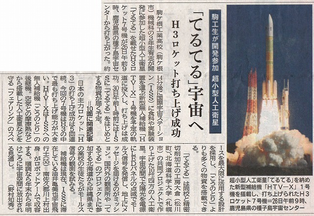 長野日報に「てるてる」を載せたH3ロケットの打ち上げの記事が掲載されました 長野日報(令和7年10月27日)2面 (記事をクリックすると別画面に拡大表示されます) 長野日報(令和7年10月27日)10面 (記事をクリックすると別画面に拡大表示されます)