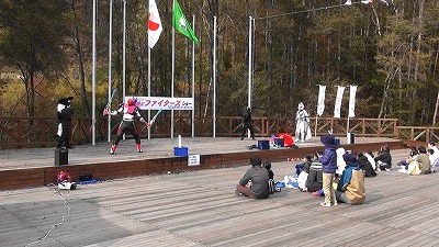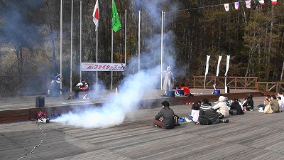 高遠フェスティバルで駒工生がヒーローショーを行いました 11月2日(日)に国立信州高遠青少年自然の家で開催された高遠フェスティバルに、電気科の課題研究で取り組んでいるコマレンジャー班が『駒工ファイターズ』のショーを行いました。