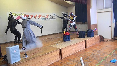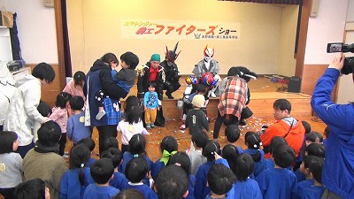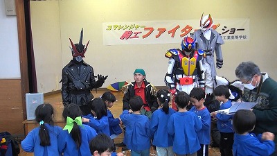 12月8日(月)に駒ケ根市すずらん保育園で、電気科の課題研究で取り組んでいるコマレンジャー班が『駒工ファイターズ』のショーを行いました。