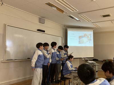 今年度の機械科の課題研究発表会では、7つのテーマのグループが発表を行いました。発表会は3年生の保護者の方にも参観していただきました。
