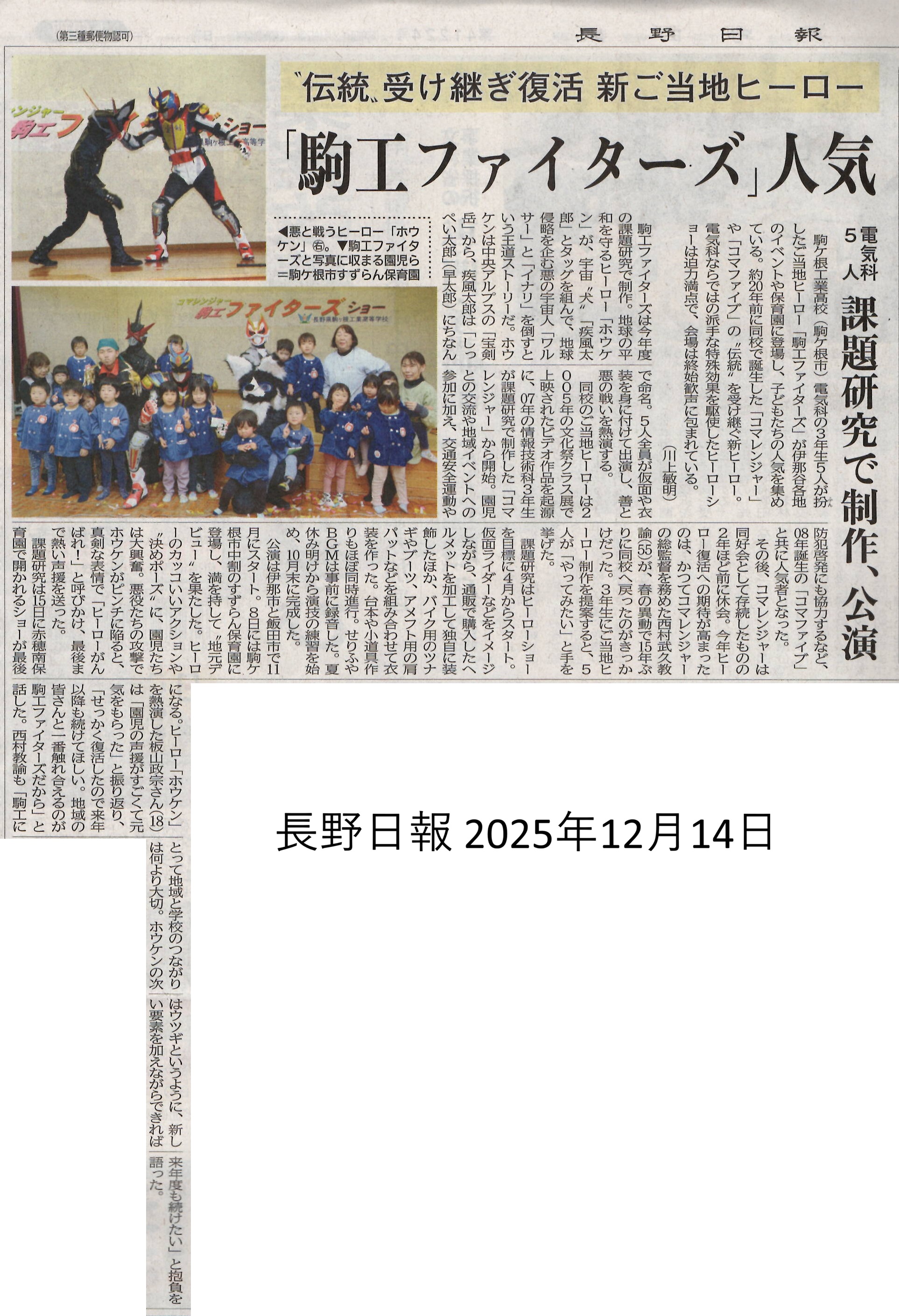 長野日報に「駒工ファイターズ」の記事が掲載されました