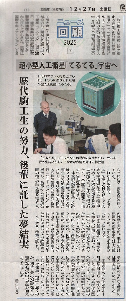 長野日報に超小型人工衛星「てるてる」の記事が掲載されました