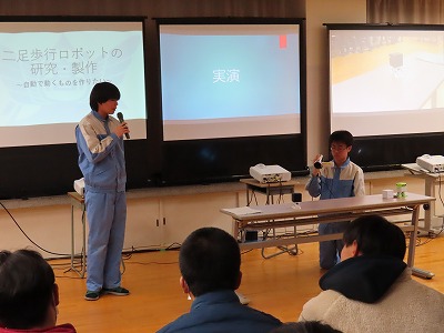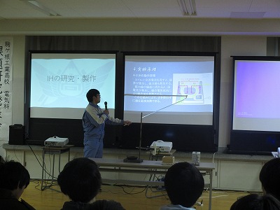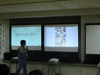 電気科の課題研究発表会が、12月25日(木)に行われました。今年度の電気科の課題研究発表会では、6グループが発表を行いました。発表会は3年生の保護者の方にも参観していただきました。