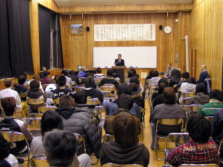 冬休みを前に、全校生徒が集まって「全校集会」を開きました。