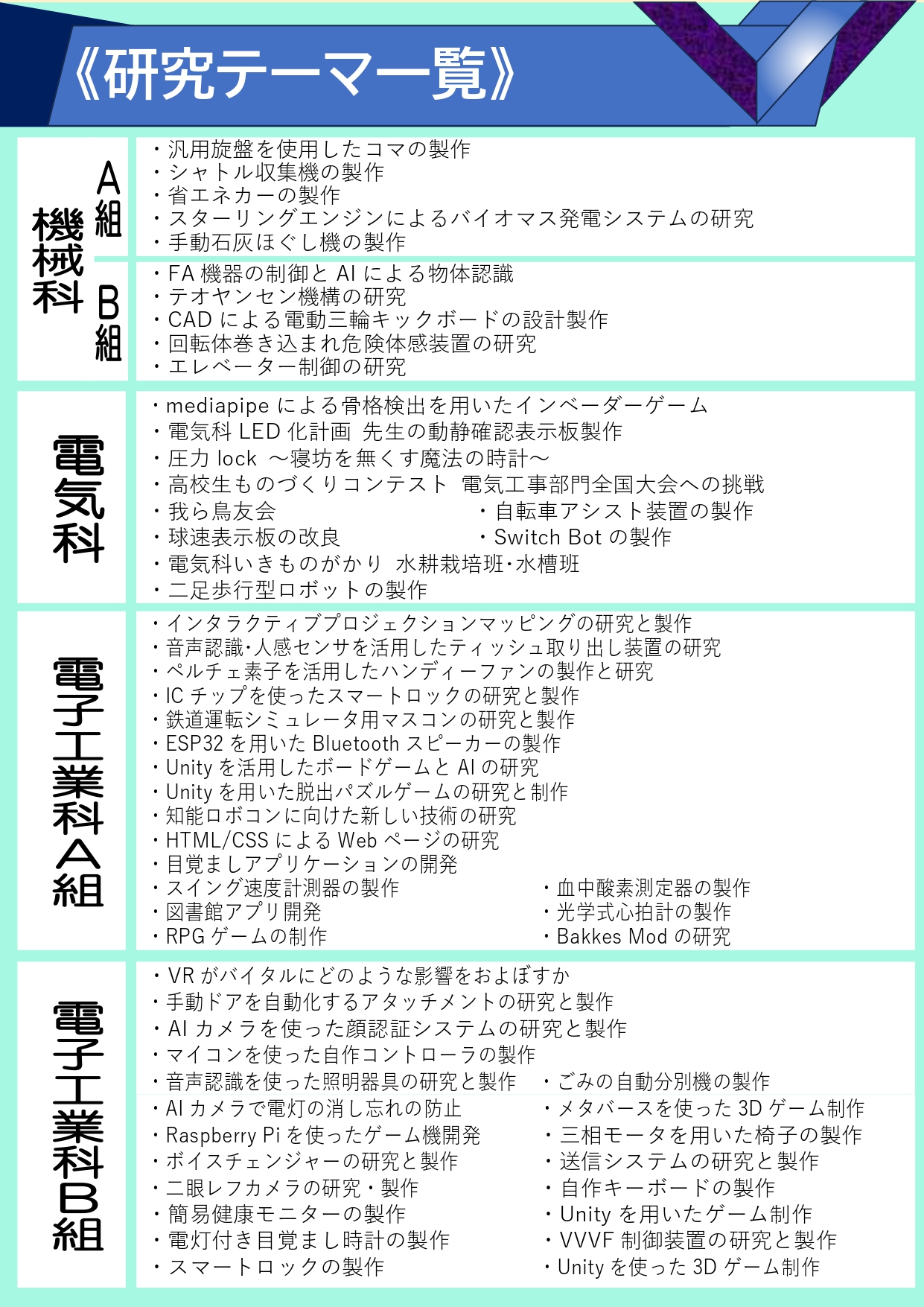 令和7年度 長野県松本工業高等学校課題研究発表会(概要)