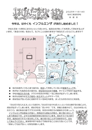 います。たとえ軽症でも登校できません。この出席停止期間は欠席日数には含みません。 治癒後、登校を再開する際には以下の書類を学校へ提出してください。(下記の報告書書式のダウンロードよりダウンロードできます) ・インフルエンザの場合 ⇒ 『治癒報告書』保護者の方が記入してください。 ・新型コロナウィルス感染症の場合 ⇒ 『出席停止期間終了報告書』保護者の方が記入してください。 ・インフルエンザ、新型コロナウィルス感染症以外の感染症 ⇒ 『登校許可書(治癒証明書)』 医師に記入していただいてください。 ▶学校感染症の種類と出席停止の基準はこちらからご覧ください。 |
