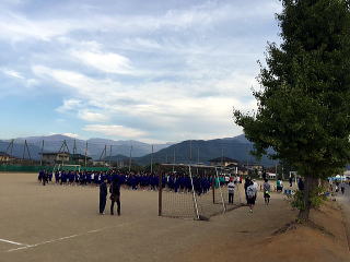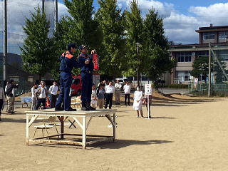 全校避難訓練が行われ、生徒・職員がサッカーグランドに避難しました。整列、点呼もスムーズに行われ、長野市東部消防署の方にお褒めの言葉をいただきました。また、消火器の扱い方の指導があり生徒、職員とも火災時を想像して聴いていました。