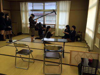 本校では4つのクラブが収録される予定で、この日は書道部と演劇部の撮影でした。カメラを向けられると照れていた生徒たちですが、ディレクターさんの巧みな声かけや回数を重ねることでより自然な形で撮られていました。