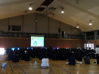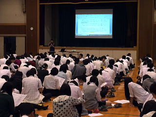 「私たちとインターネット」という演題で、ITながの理事長の中島直美先生をお招きして、本校体育館にて講義が行われました。携帯電話・インターネットを使う人の責任について具体的に教えていただきました。