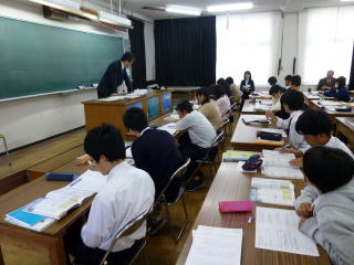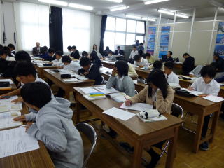 午前の授業が公開され、およそ60名の方々が参観されました。中学生がほとんどでしたが、保護者の方、地域の方にもお越しいただきありがとうございました。授業見学の後は、学校説明会も行われ、中学生と保護者の方々か熱心に質問をしていました。