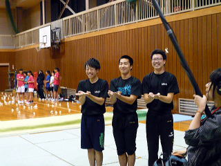 今回は茶道部、体操部、飛び入りでバドミントン部がZIPの撮影に臨みました。緊張しながらも徐々になれ、みんな笑顔で撮影を終えました。